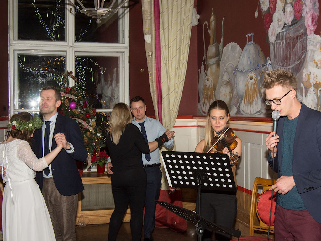 Oprawa muzyczna – Hot Strings dzięki swojemu unikalnemu brzmieniu gwarantuje wyjątkowe przeżycie ważnych chwil. Zespół świetnie dopasowuje się do okoliczności proponując swoją muzykę oraz wykonując piosenki, zamówione specjalnie na daną okazję.